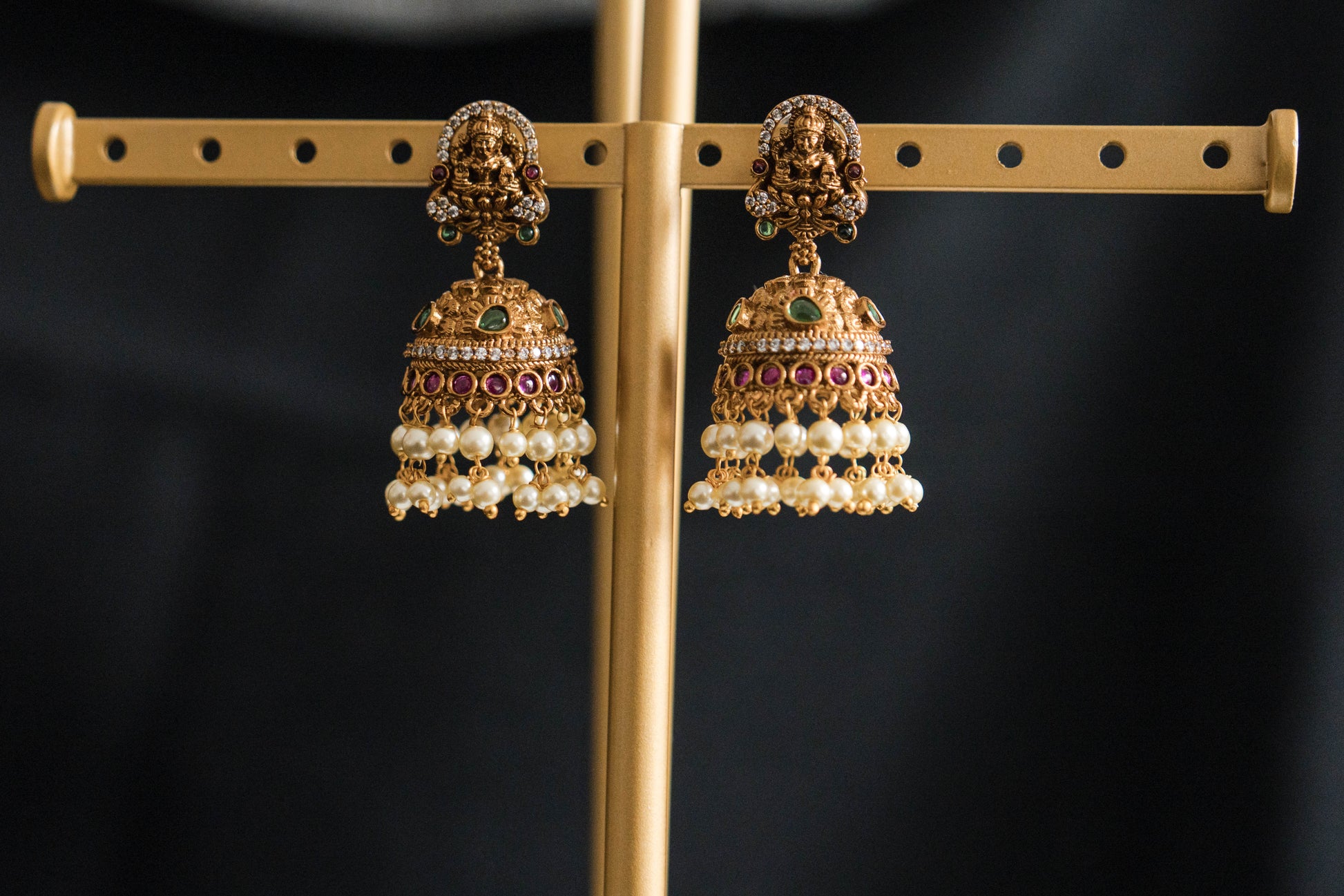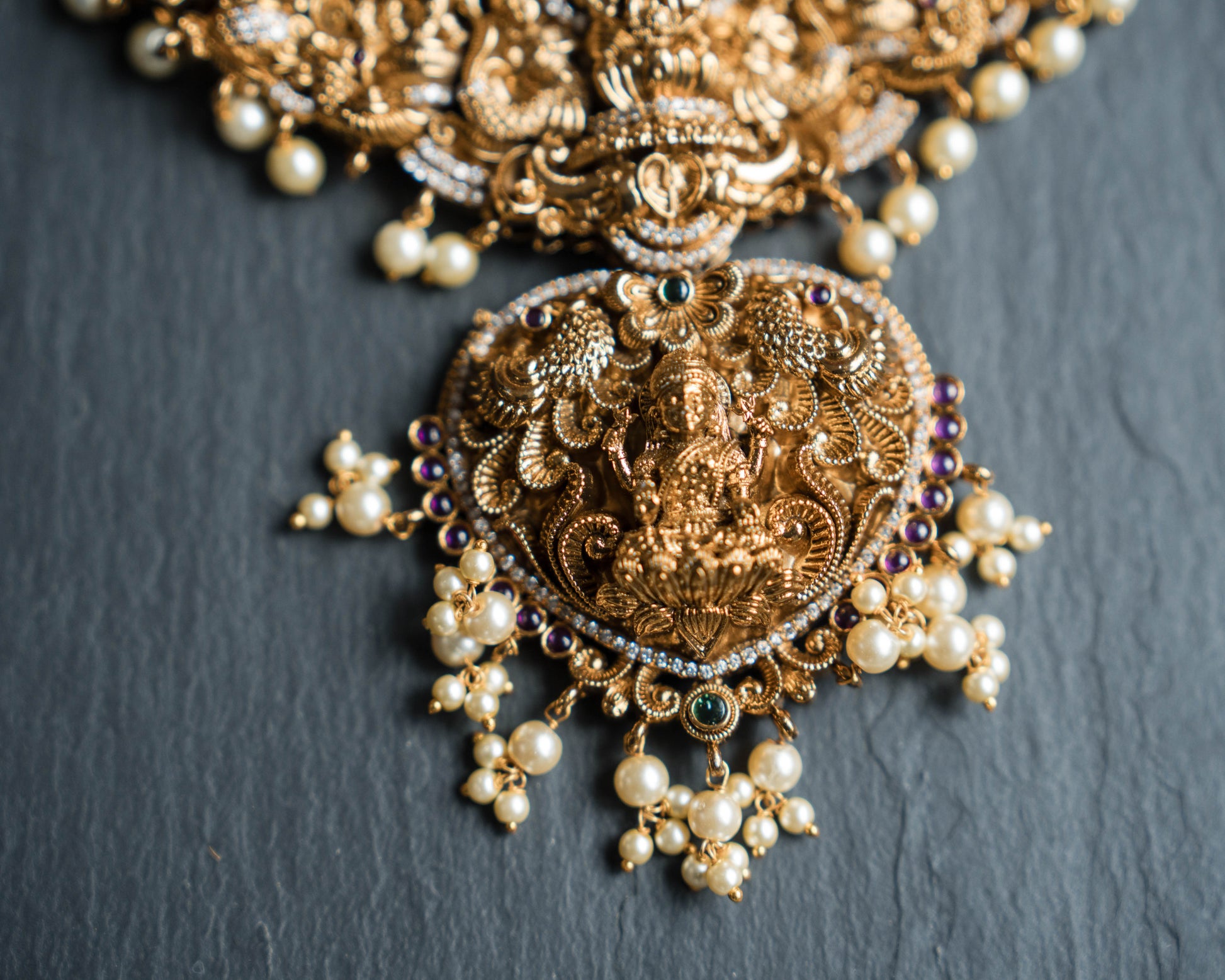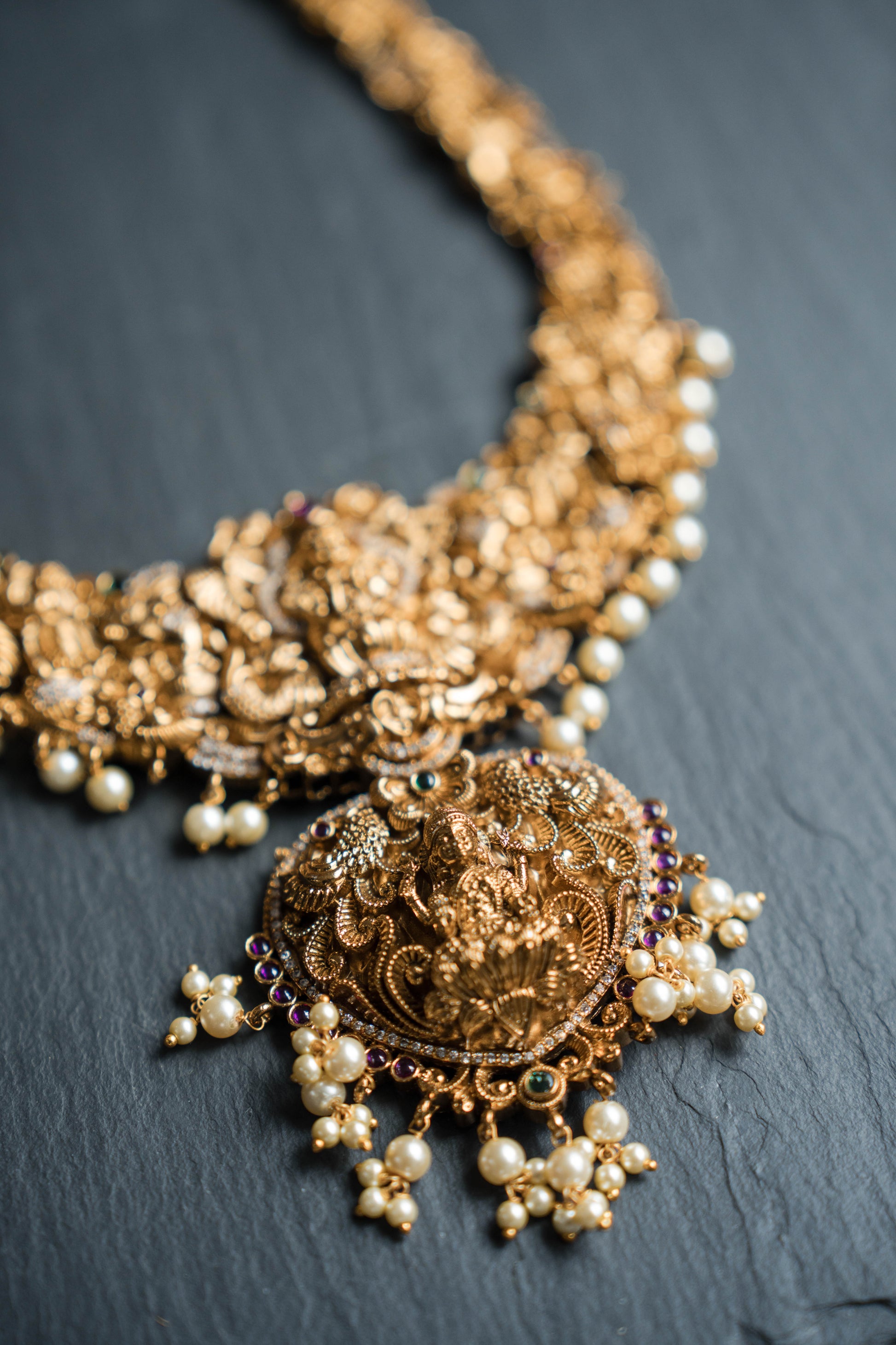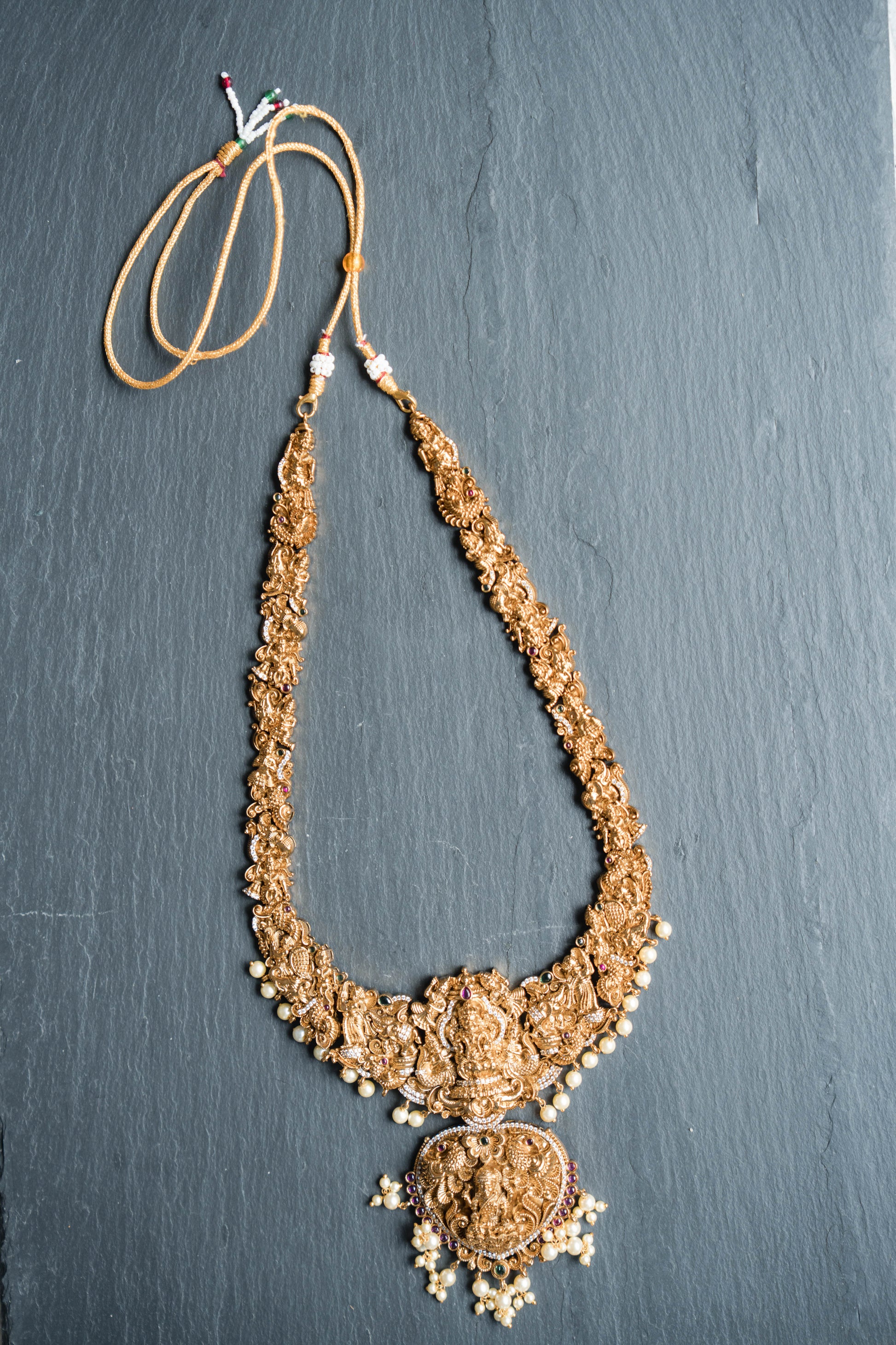 Heavy Lakshmi Necklace with Pearl Beads (Set)